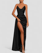 Strapless Satin Prom Dress with Elegant Side Slit Detail