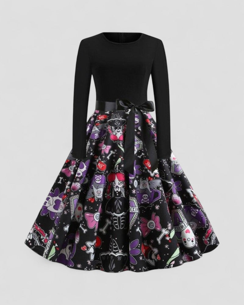 Gothic Cartoon Long Sleeve Halloween Costume Dress Mini