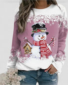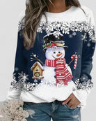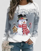 Cotton Blend Christmas Snowman Print Long Sleeve Sweatshirt