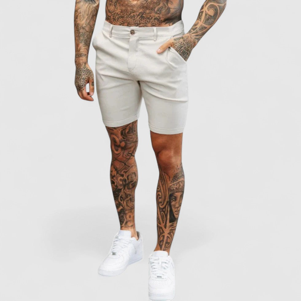 These chino shorts are designed for a clean and modern summer look. Crafted from soft cotton with a touch of stretch, they provide a slim yet comfortable fit suitable for both casual days and smart-casual occasions.